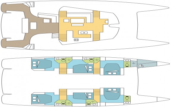 - Kabinen: 5 Doppelkabinen + 2 Einzelkabinen