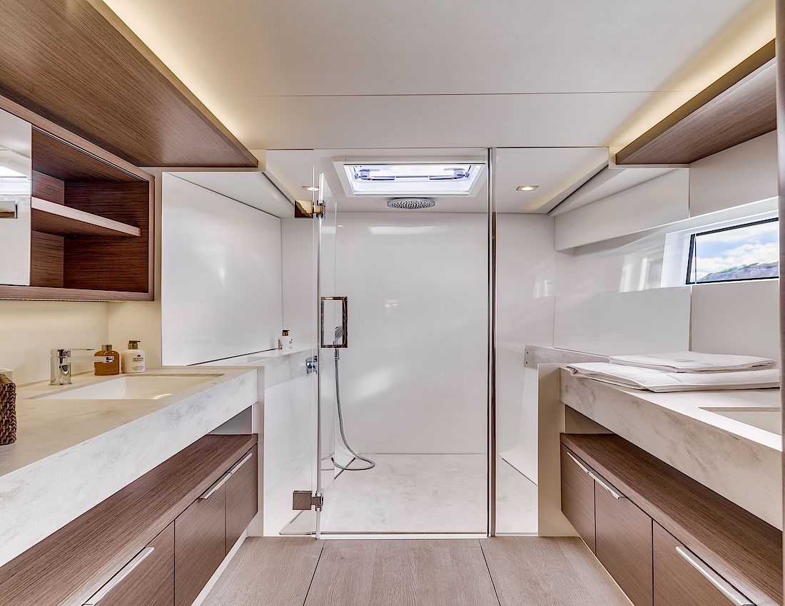 Mit ihrem neuen Design und dem neuen Lagoon Rigg verbindet die Lagoon 50 ein unglaubliches Raumangebot mit einer guten Segelperformance. Drinnen und Draußen verbinden sich durch die große Schiebetür. Cockpit und Salon gehen fließend ineinander über und gewähren Ihnen einen großzügigen Lebensraum mit einem perfekten Wasserblick. Die Kabinen sind mit großzügigen Doppelbetten ausgestattet und durch große Rumpffenster optimal belichtet und belüftet. Ganz nach Ihren Vorstellungen können Sie Ihre Lagoon 50 mit zusätzlichen Kabinen oder begehbaren Kleiderschränken ausrüsten. Wählen Sie zwischen 3 bis 6 Kabinen und bereisen die Welt.