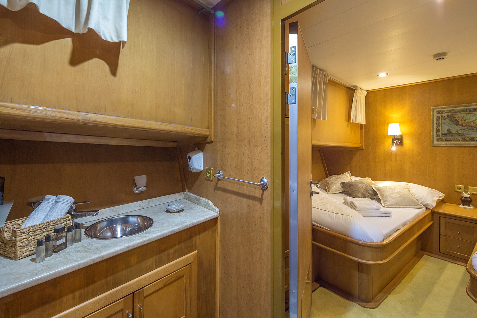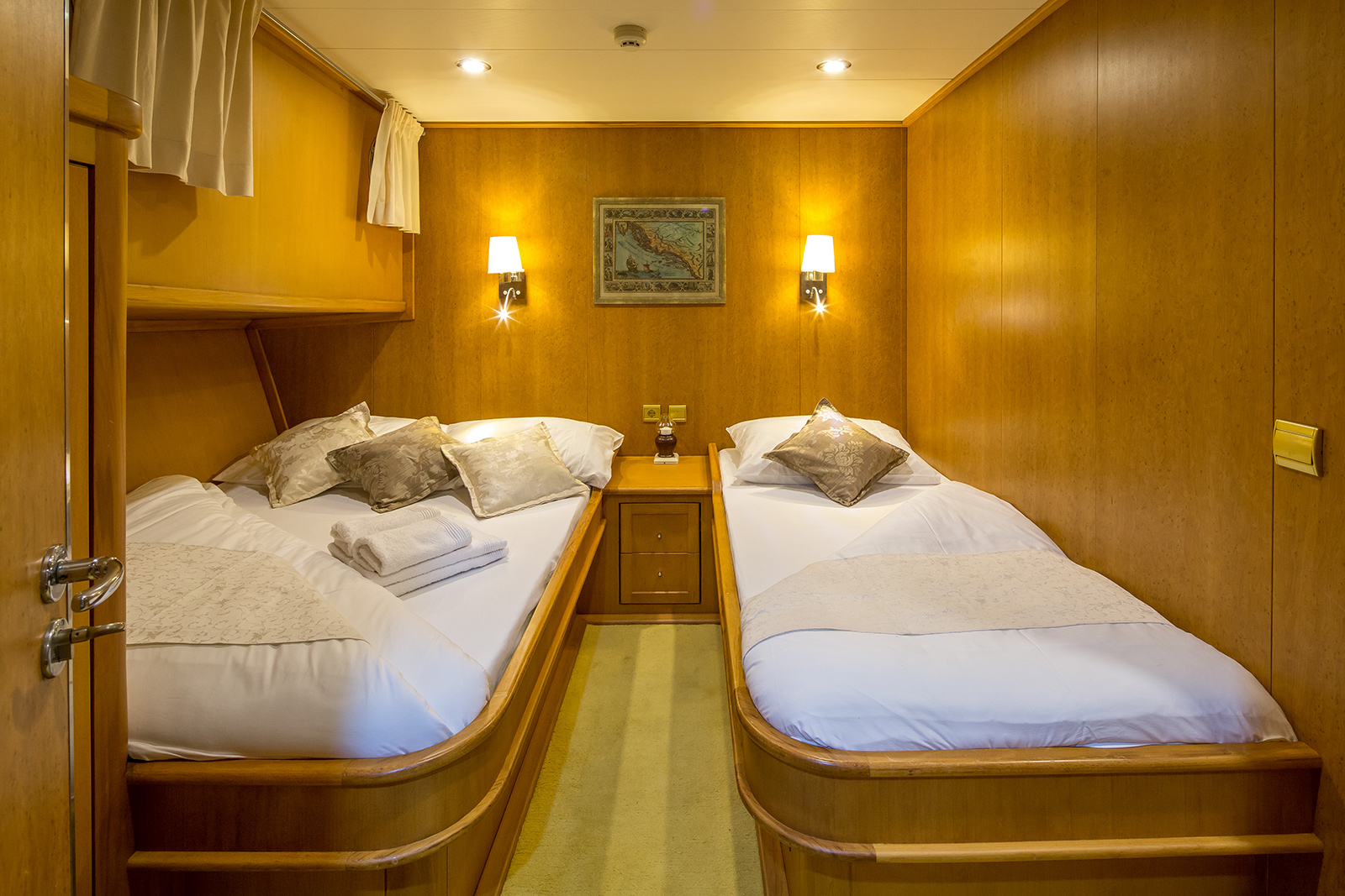 - Kabinen: 6 Kabinen für 12+2 (auf Anfrage) Gäste an Bord