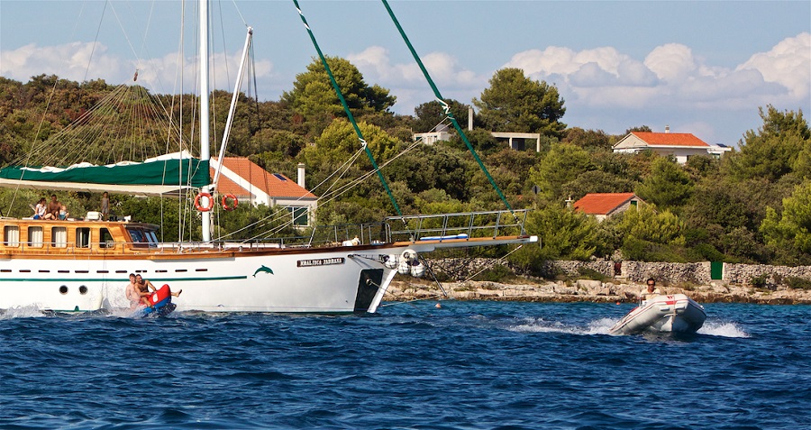 Gulet Queen of the Adriatic ist eine 27 Meter lange Segelyacht, die für außergewöhnliche Segeltörns in Kroatien entwickelt wurde. Es zeichnet sich durch die Formen eines traditionellen Gulet aus, kombiniert mit modernem Design. Es gibt 6 geräumige Kabinen für bis zu 12 Chartergäste, jede mit Mahagoniverkleidung, Klimaanlage und eigenem privaten Badezimmer. Im Inneren befindet sich der Salon mit einer Bar und einem Esszimmer, während das Äußere über riesige Teakholzdecks verfügt, die viel Platz zum Sonnenbaden und Entspannen bieten. Das überdachte Achterdeck ist ein schöner Essbereich im Freien, ideal für die Verkostung exzellenter gastronomischer Spezialitäten an Bord. Für ein aktiveres Segelerlebnis können Sie an verschiedenen sportlichen Aktivitäten wie Schnorcheln, Angeln, Kanufahren und Jetski teilnehmen.