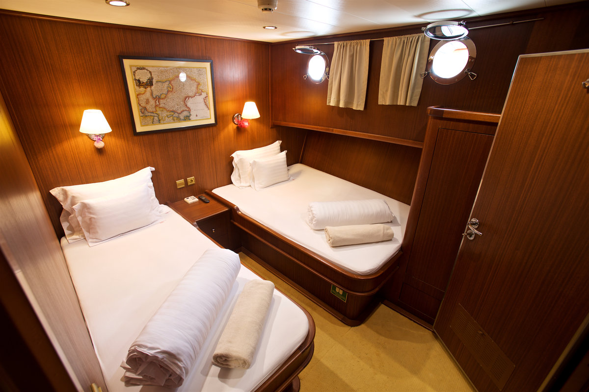 - Kabinen: 6 Kabinen für 12+2 (auf Anfrage) Gäste an Bord
