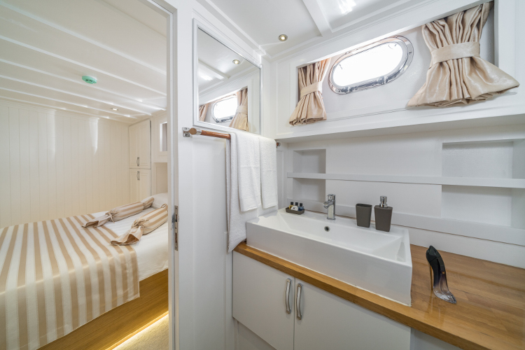 - Kabinen: 5 Kabinen für 10 Gäste an Bord