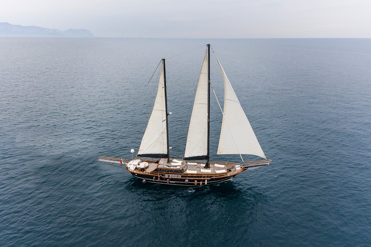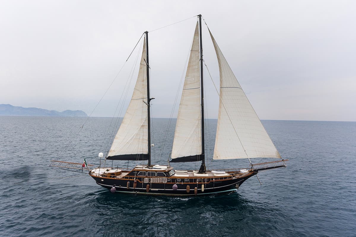 ANGELIQUE ist eine 24 Meter lange Luxus-Gulet zum Chartern in Sizilien oder auf Anfrage auch ab Neapel. Eine ideale Wahl für diejenigen, die das Segeln mit einer Gulet erleben möchten. Sie kann bis zu 8 Gäste in 4 Deluxe-Kabinen unterbringen. Jede mit großen Räumen und Kleiderschränken, eigenem Bad und individueller Klimaanlage zum Kühlen und Heizen.