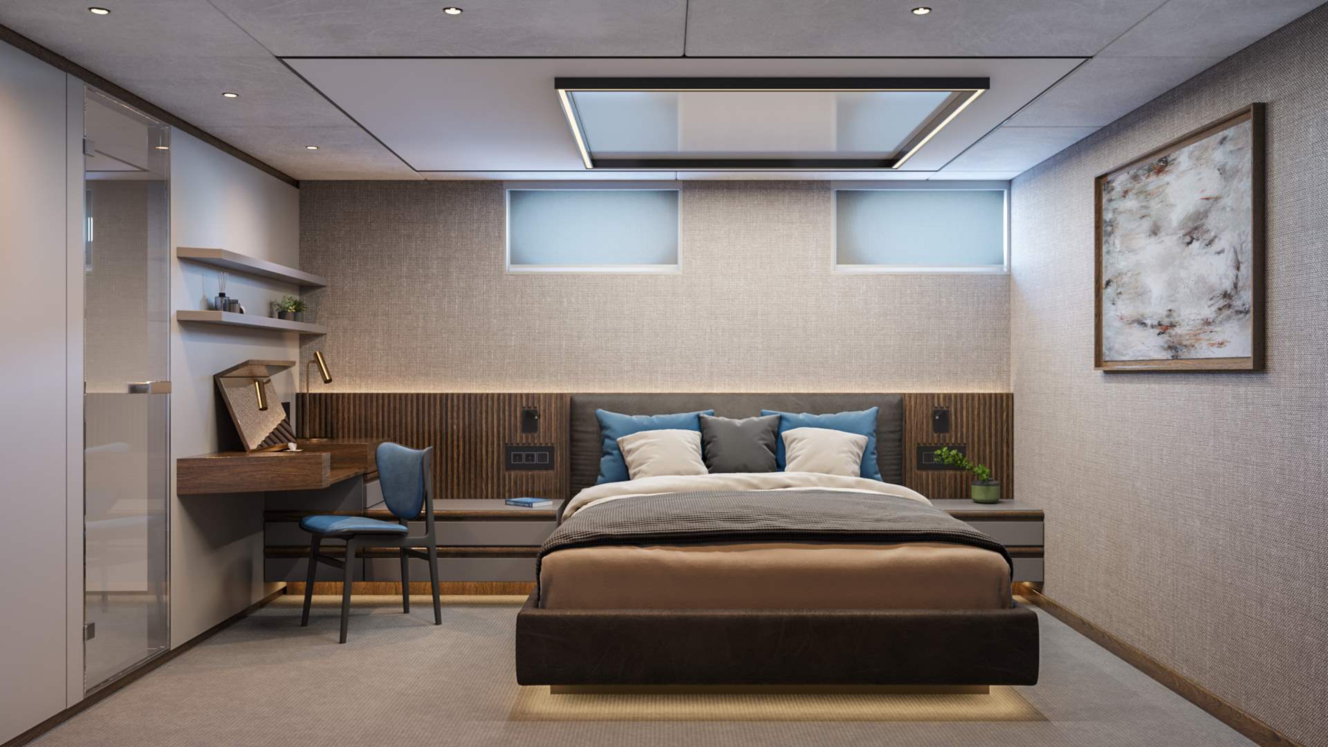 Der geräumige Bereich auf der Flybridge ist mit einem Jacuzzi und einem Sitzbereich ausgestattet. Auf dem Achterdeck gibt es einen Zugang zur Plattform für eine einfachere Nutzung der Wassersportmöglichkeiten und zum Schwimmen. Die Wassersportausrüstung besteht aus einem Beiboot, Wasserski, Jetski, Kajak, Paddleboard, einem Satz Masken, Schnorcheln und Schwimmflossen. 8 Crew-Mitglieder werden Ihnen während der gesamten Reise das höchste Niveau an Service und Luxus bieten.