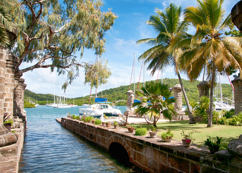 Mit seiner zerklüfteten Küste, den sicheren Häfen und den umgebenden Korallenriffen war Antigua der ideale Ort, um in der Kolonialzeit die englische Flotte zu stationieren. Horatio Nelson, einer der berühmtesten Admiräle Ihrer Majestät, ließ 1784 eine prächtige Hafenanlage zu errichten.